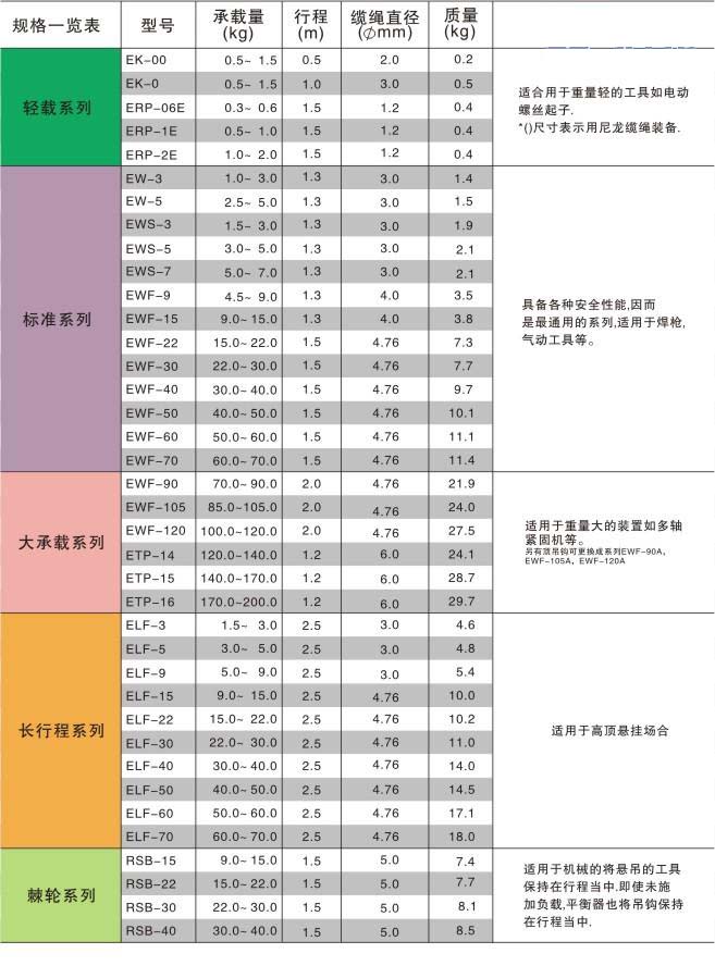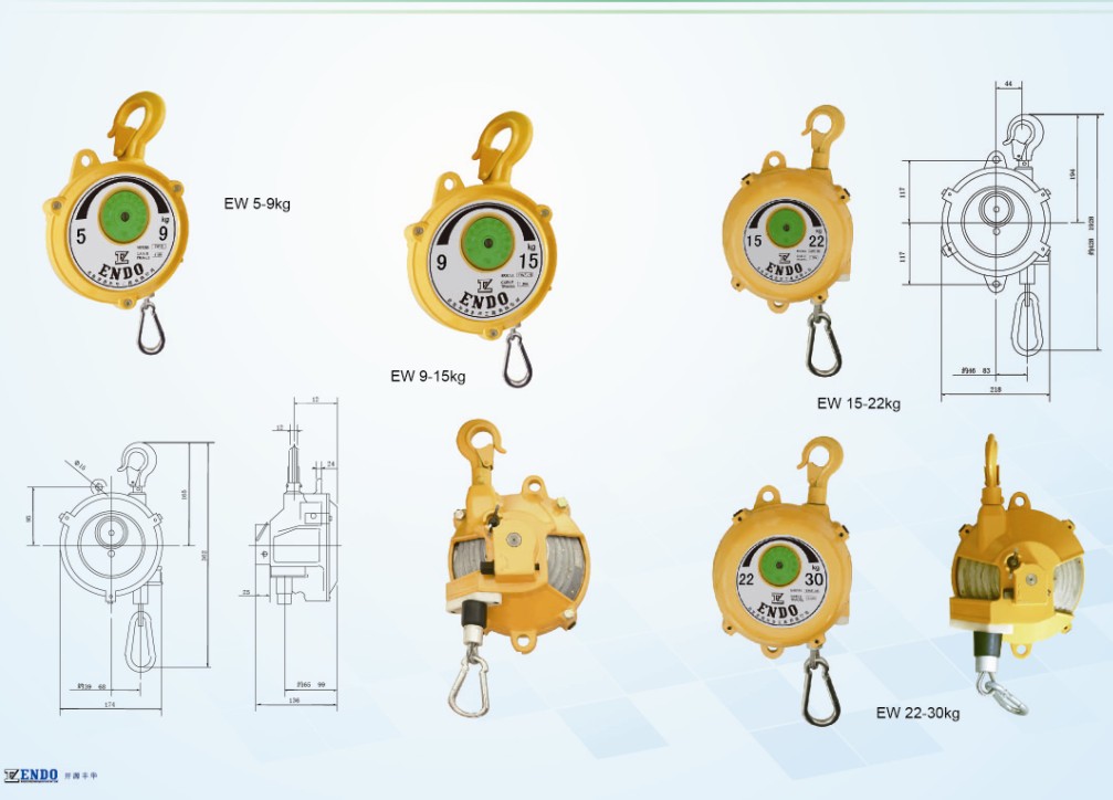 日本遠藤彈簧平衡器是一種機械操作時使用的輔助工具,主要運用在工廠車間的流水生產(chǎn)線上,日本遠藤彈簧平衡器主要借助拉簧的力量使所懸掛的被吊物體處于無重狀態(tài),從而減少勞動強度,增加工作效率,降低您的生產(chǎn)成本,日本遠藤彈簧平衡器是工廠流水線不可缺少的工具之一。 1、平衡器可改進工作效率和減少操作者疲勞。 2、平衡器可使工具的位置穩(wěn)定,有助于精確工作。 3、平衡器可用來保持工具的潔凈。 4、無需電源或空氣源,實現(xiàn)安全工作。 5、封閉式殼體及纜繩導(dǎo)向裝置可防止夾手指事故及擦傷殼體。